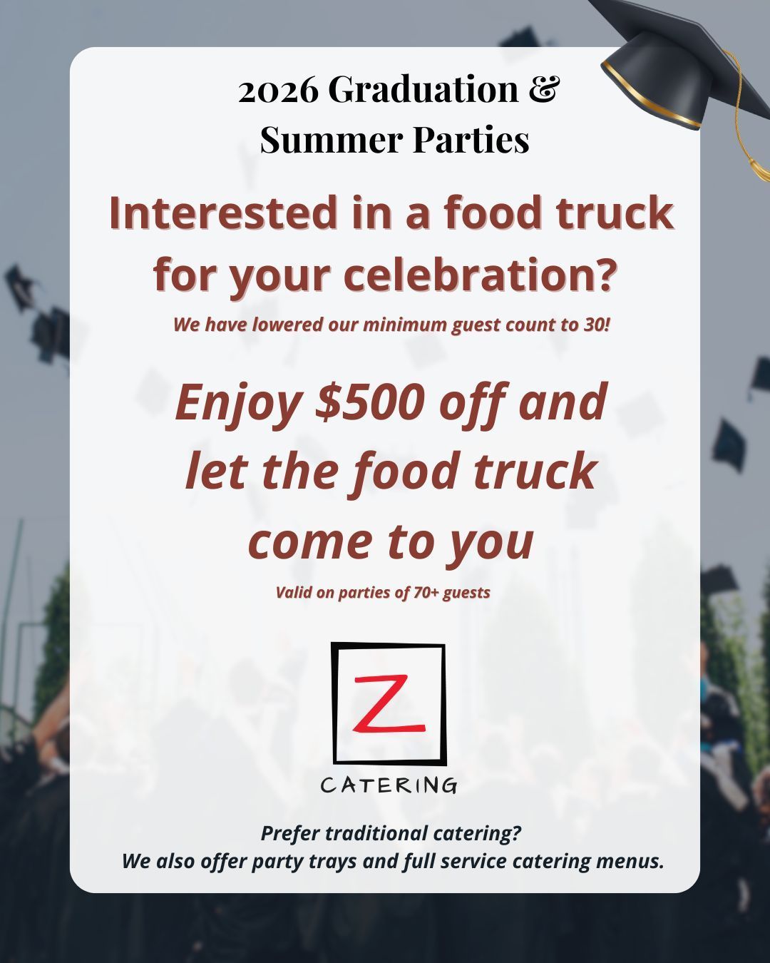 We at Z Catering are honored that you have chosen us to cater an important event in your life. We are a creative, excited, and optimistic team, always ready to take on new adventures and challenges.